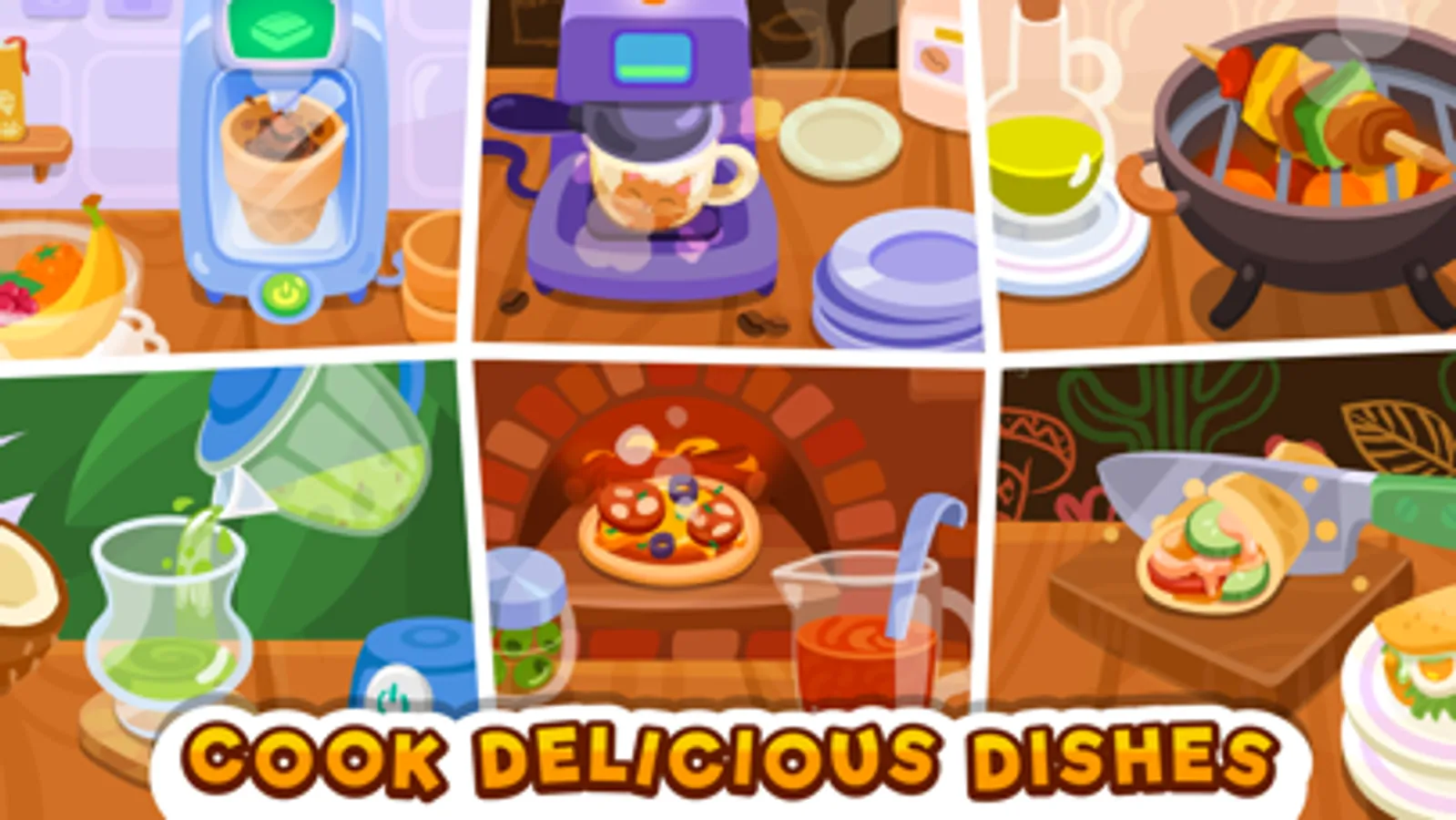 Bubbu’s philosophy is to serve good & healthy food and to keep customers always happy. Use your cooking and management skills to show your best on time. While having fun, learn some basic cooking techniques to prepare juice, tea, coffee, burgers, tacos, spaghetti, barbecue, French fries, ice cream, cupcake, pizza and sushi. Cook the best food with the best ingredients!