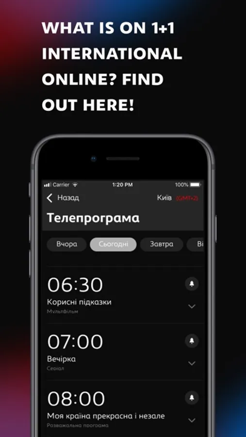 1+1 International is a family-oriented channel where you can see the whole range of programming for viewers of all ages: from cartoons and entertainment programs to intellectual talk shows and documentaries. The very best of Ukrainian television can be found on the TV channel 1+1 International.