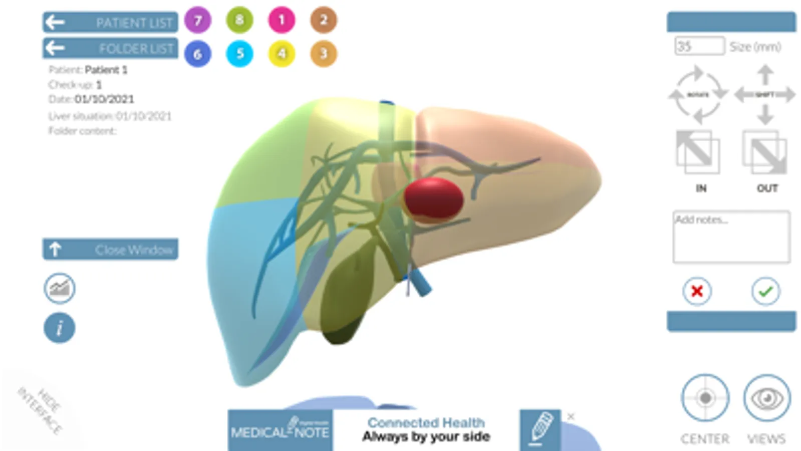 LIVER-NOTE is an app for liver pathologies that allows you to easily take notes on a 3D liver model, communicate with your patients, and receive support from your colleagues.