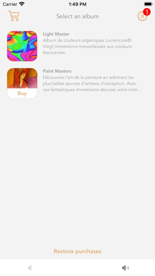 L'application peut être utilisée comme application autonome pour la chromothérapie ou comme télécommande pour les produits et instruments d'éclairage d'ambiance Lumencure®.