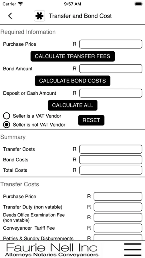 Transfer and Bond costs calculator