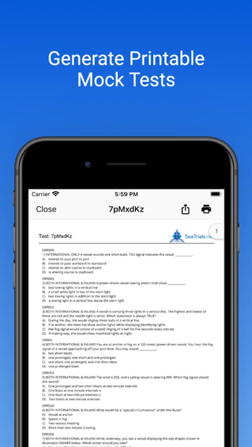 Sea Trials is the most up-to-date multi-platform tool designed to help you study and PASS the U.S. Coast Guard DECK & ENGINE Exams for ALL ratings. This is similar to Upgrade U but brought into the future! Website and App sync all bookmarks and resume functionality! Printable tests! Updated Questions!