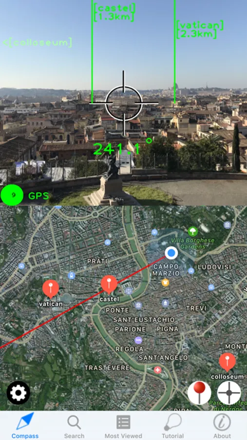 Compass Map-Camera integrates the image from the camera with the map and compass.