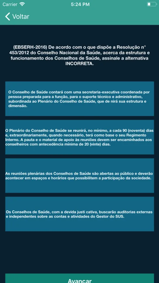 Aplicativo com questões de múltipla escolha comentadas, todas off-line. É um app destinado a você que deseja ser aprovado nos melhores concursos. Baseia-se na resolução de questões de múltipla escolha semelhantes as que irá encontrar na situação real de seleção. Além disso, apresenta o conteúdo para que se possa estudar. Ao final, será informado de suas estatísticas de acerto.