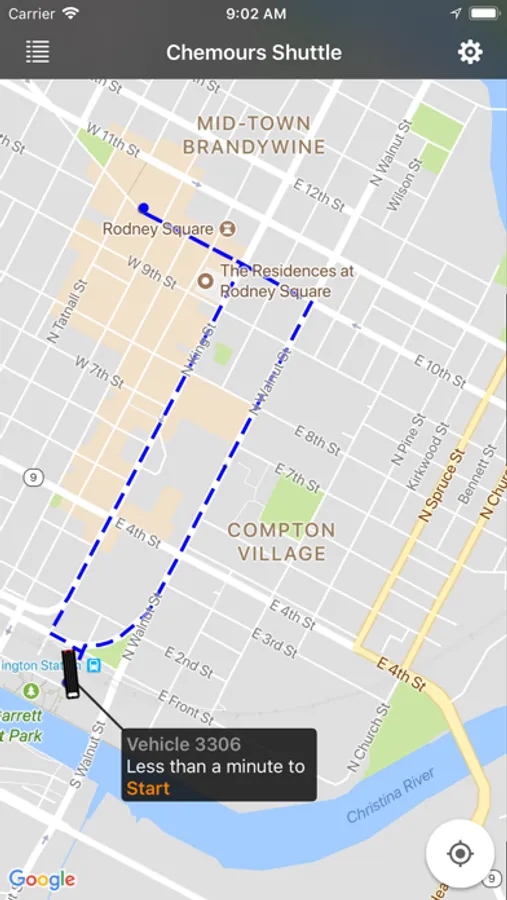 The Chemours Employee Shuttle App allows you to conveniently track the shuttle to see in real-time where it is and the estimated time to the next stop so you can plan your departure accordingly.