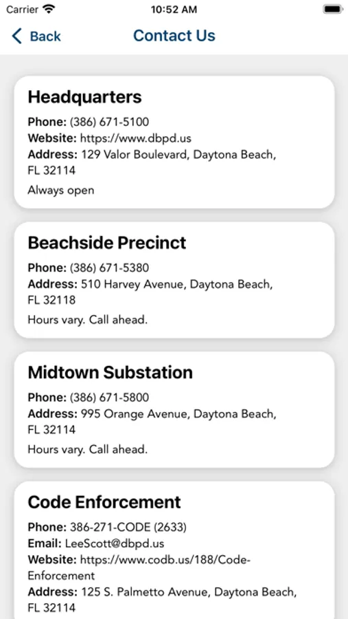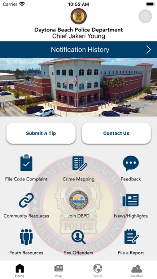 The Daytona Beach Police Department mobile application will help improve our communication with the citizens and visitors of the "World's Most Famous Beach". The purpose of this app is to improve our ability to engage the community through various features, including but not limited to social media, tip submissions, requesting extra patrols and emergency alerts. This app is not meant to be used to report emergency situations. If you have an emergency, please call 911.
