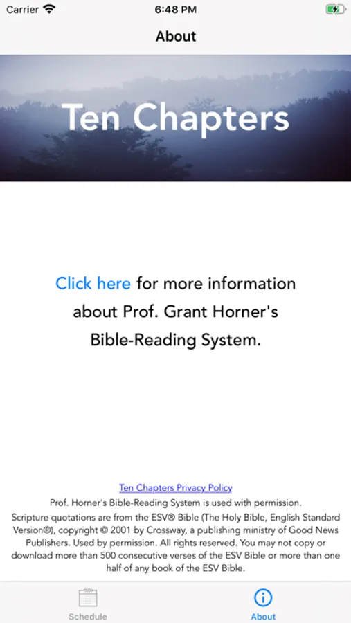 Ten Chapters is an app for keeping track of Professor Grant Horner's Bible-Reading System.