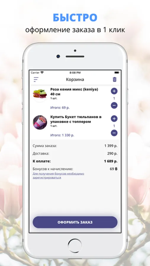 посмотреть каталог букетов и совершить онлайн-заказ,