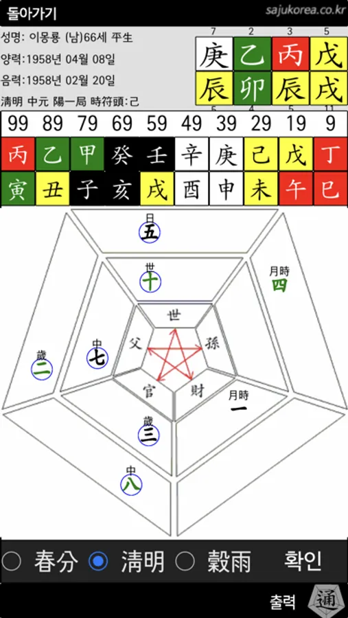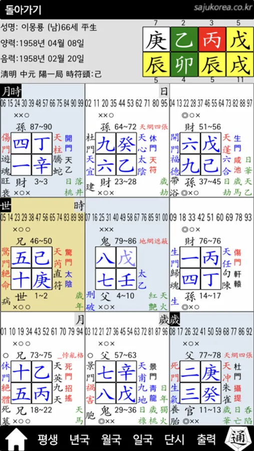 * 년국(궁마다 양력기간), 월국(음력 날짜), 일국(궁에따른 시각)표시