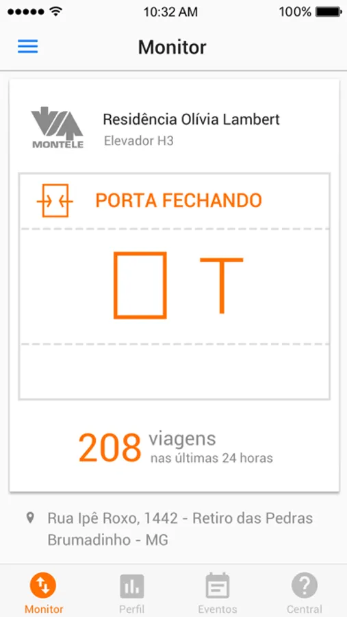 O acesso ao app depende da contratação do serviço de monitoramento remoto e da autorização do responsável pelo serviço de manutenção do elevador.