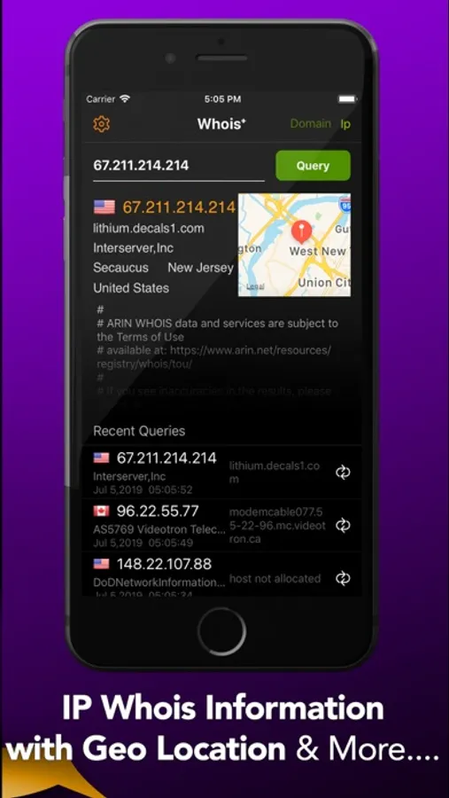 - Supports ARIN, RIPE, APNIC, LACNIC, AFRINIC and referral servers