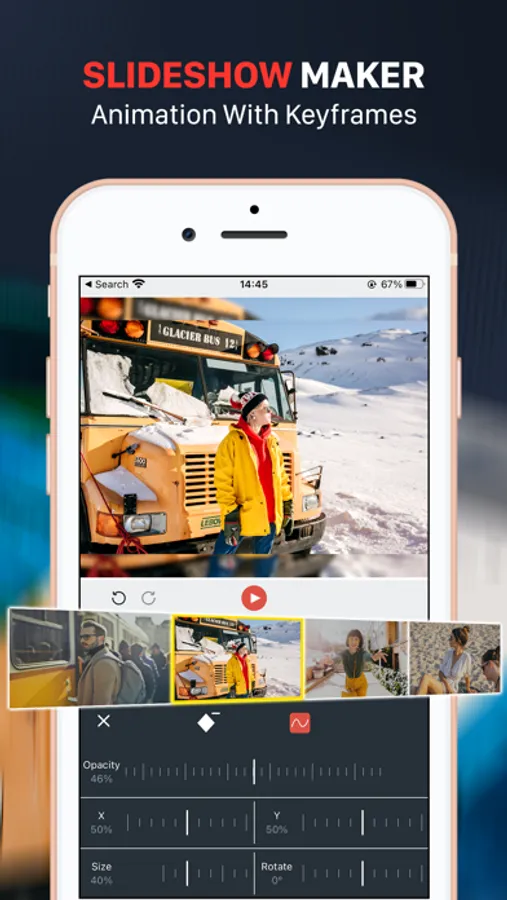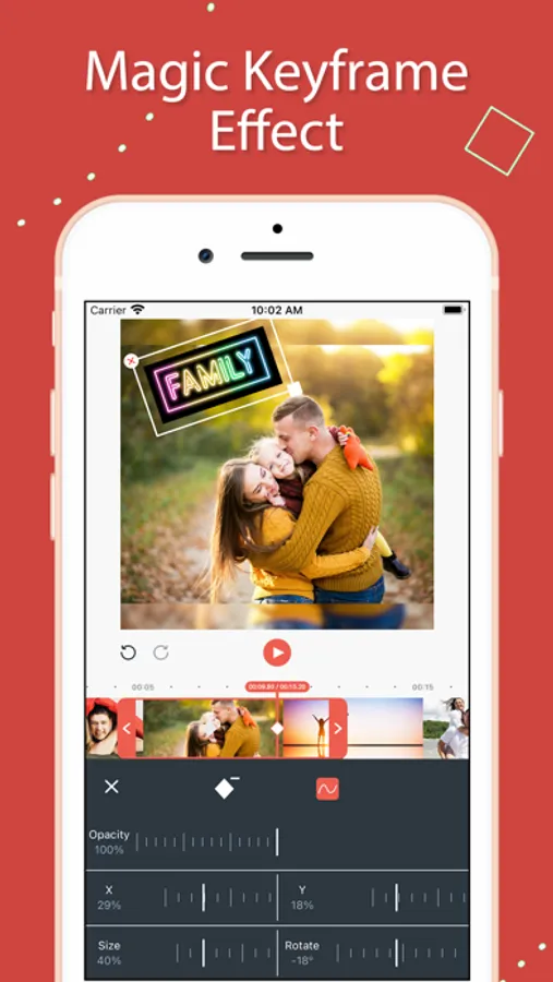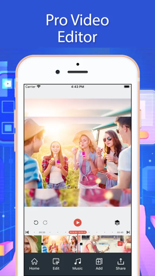 Controlling aspect ratios, transition animations, motions stickers,motion texts, text effects, templates, background music.