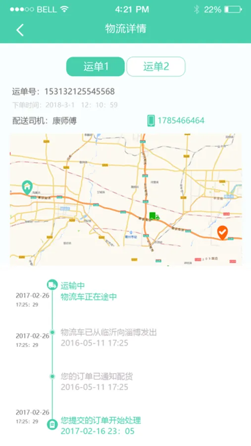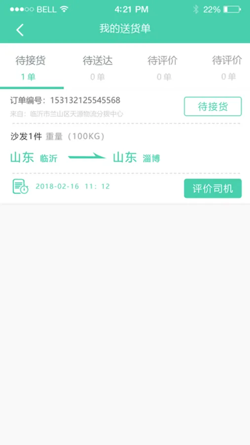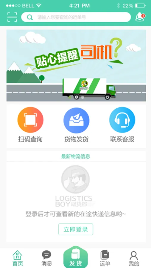 取货郎用于货主通过APP进行发货,并可以通过APP查看货物运输状态