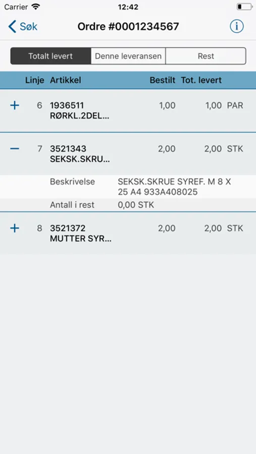 BD Varemottak er en løsning hvor kunder av Brødrene Dahl kan se følgeseddel/pakkseddel på telefon eller tab. Det vises enkelt hva du mottar i «Denne leveransen», hva som er «Rest» (ennå ikke levert) og hvor mye du har mottatt i en ordre hittil (flere leveranser i samme ordre).