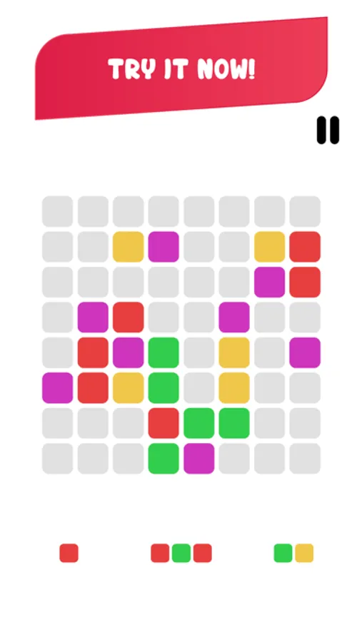 This is a simple puzzle game of matching and eliminating horizontal and vertical lines of the same color. Move different blocks to fill up the grid and fit the puzzle.