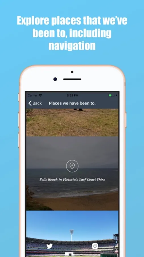 - Introducing 'Places' - Our coolest new feature. Every picture has a navigable link, just tap on the location pin and choose your favourite navigation app!