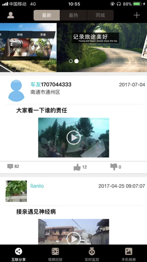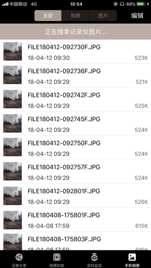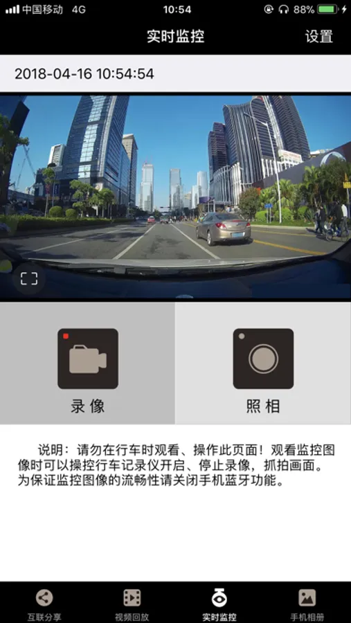 1、实时:可实时查看当前行车记录仪的图像显示,控制其录像、拍照;