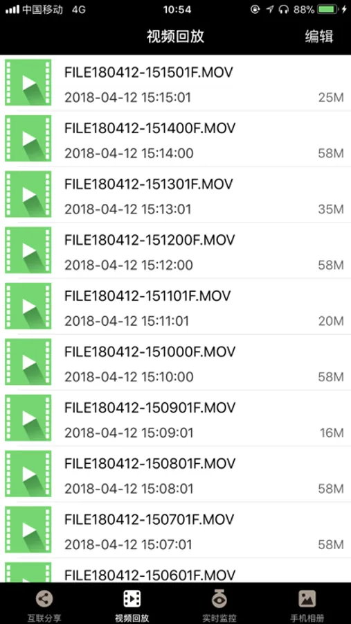 2、回放:将设备中的视频文件以列表形式展现,可以删除或下载到手机;