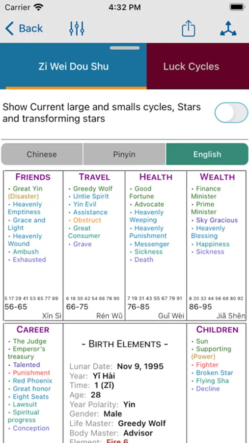 • Zi Wei Dou Shu, transforming stars, large and small cycles Palaces and stars