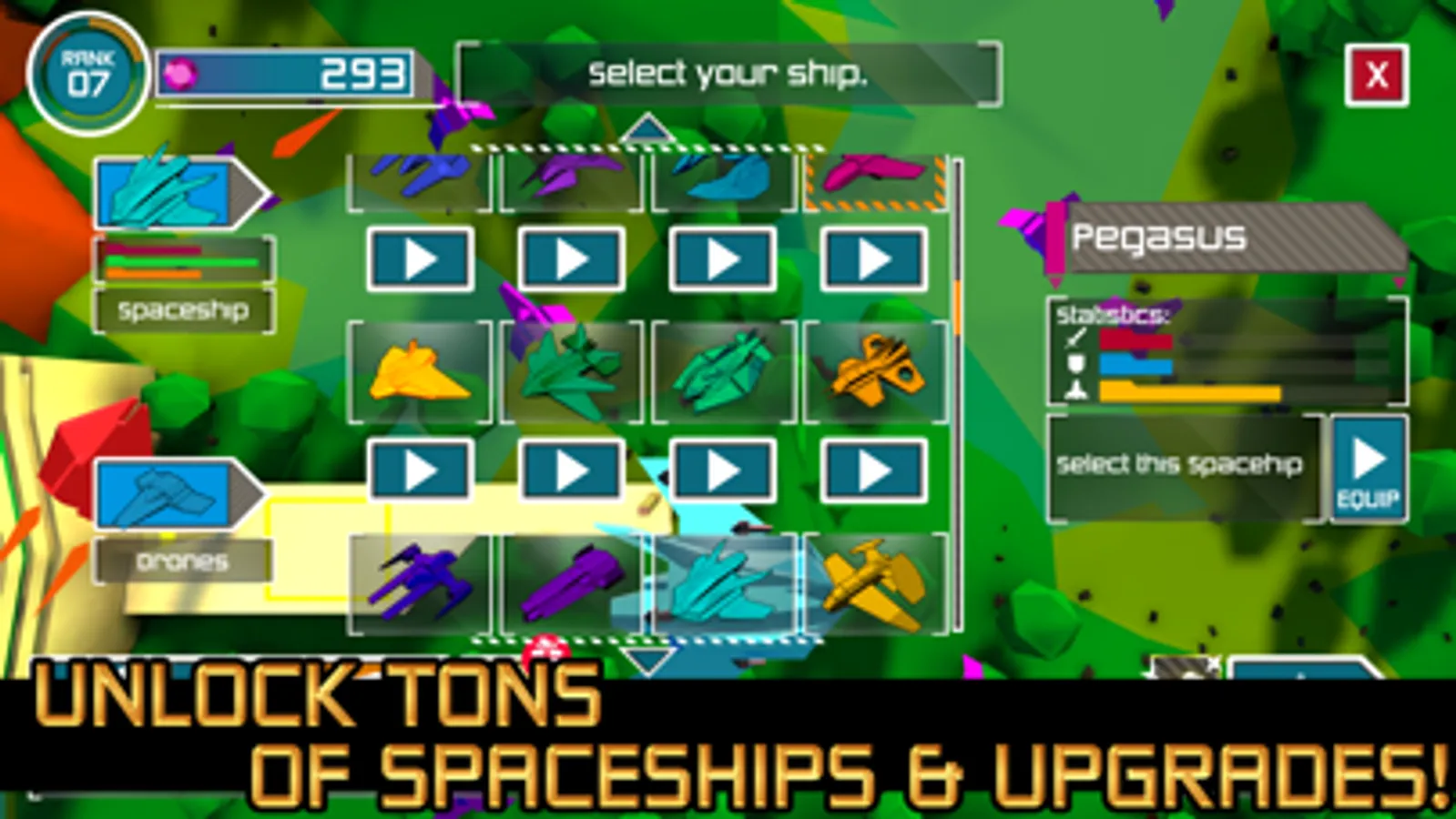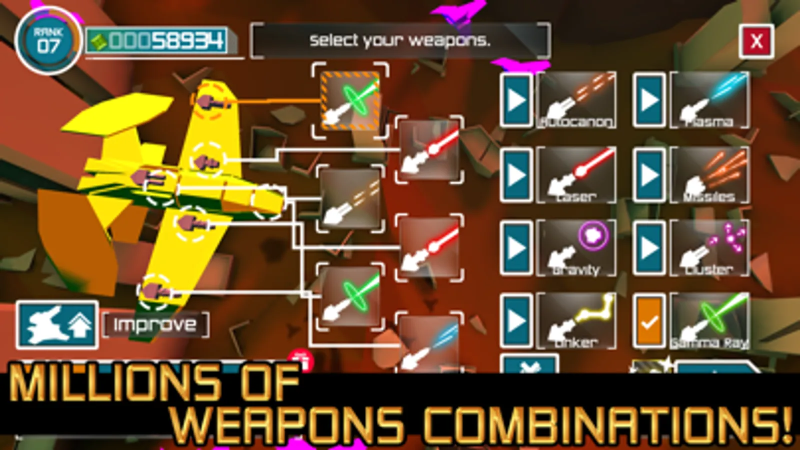 Customize your spaceship thanks to dozens of upgrades and weapons! Collect new ships and optimize your weapon combos to reach the highest score!