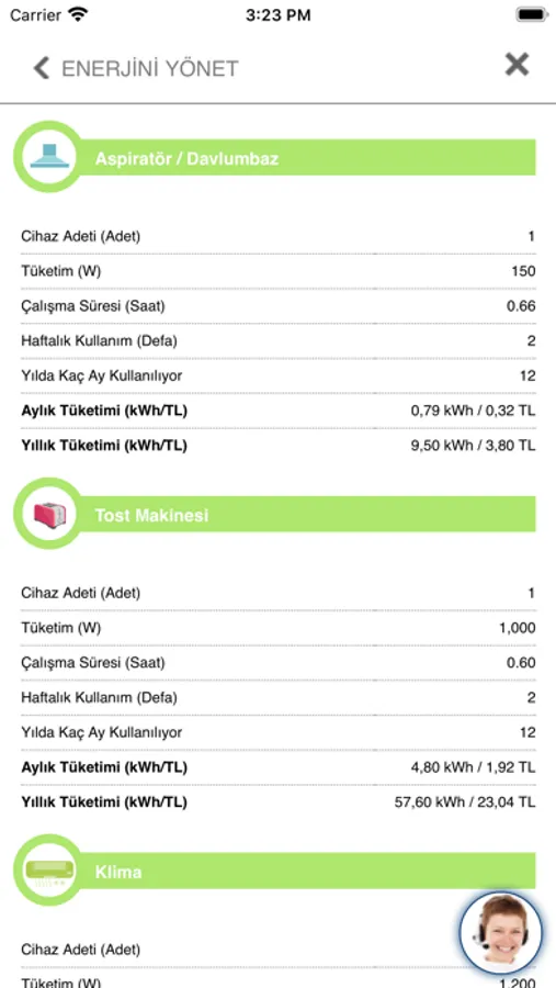 • Yıllık elektrik tüketimlerini takip edebilme,