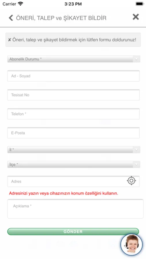 • Aydınlatma formu, arıza bildirim formu, öneri, talep ve şikayet formlarını doldurup gönderebilme,