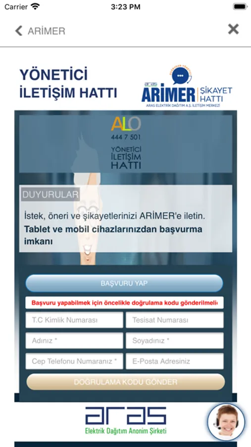 Erzurum, Erzincan, Bayburt, Ağrı, Kars, Iğdır ve Ardahan illerinde hizmet veren Aras Elektrik müşterilerine sunmakta olduğu hizmetleri bu uygulama ile mobil ortama taşımaktadır.