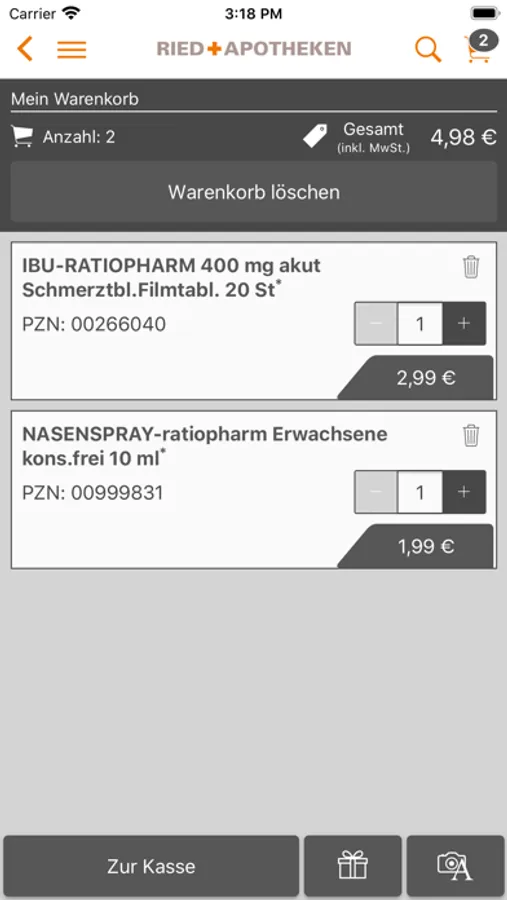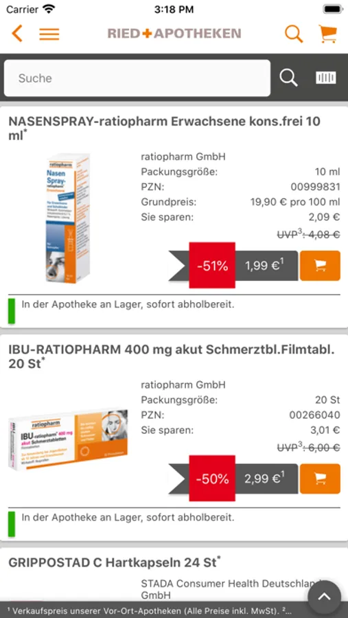• Beipackzettel und Allergiehinweise sind per Klick verfügbar.