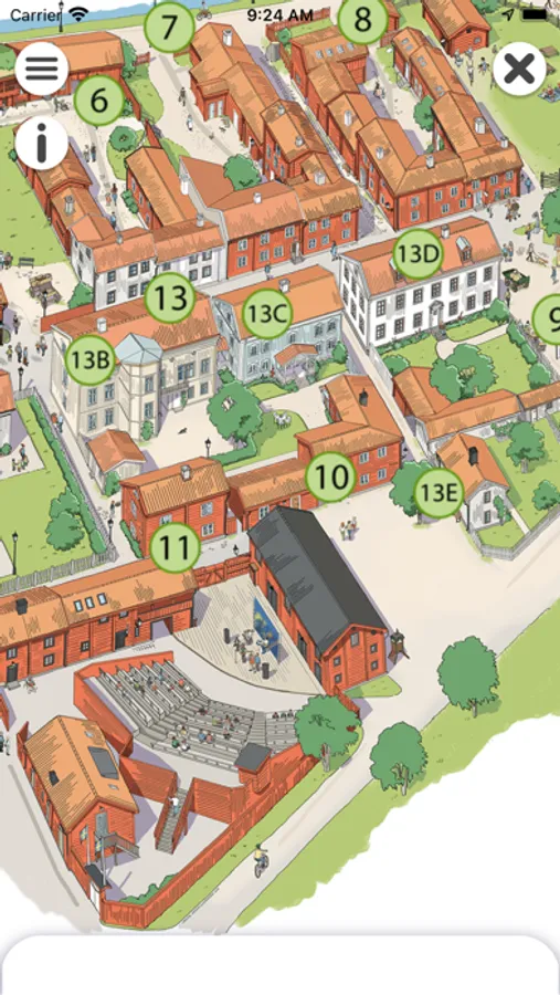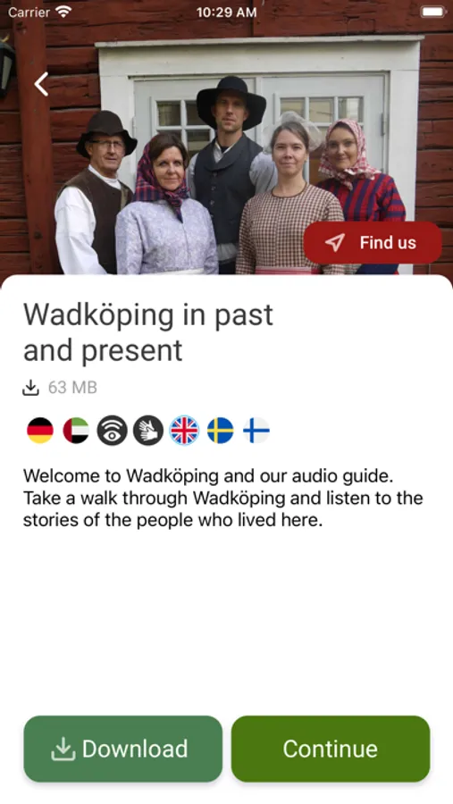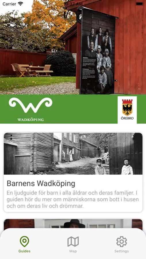 The audio guides tell the story about the people who lived in the houses at the time. They are available in Swedish, English, German, Finnish, Arabic, Swedish with audio descriptions and Sign Language. Download the app and select the language of your choice by pressing the menu button and select your language.