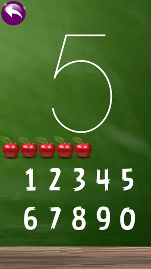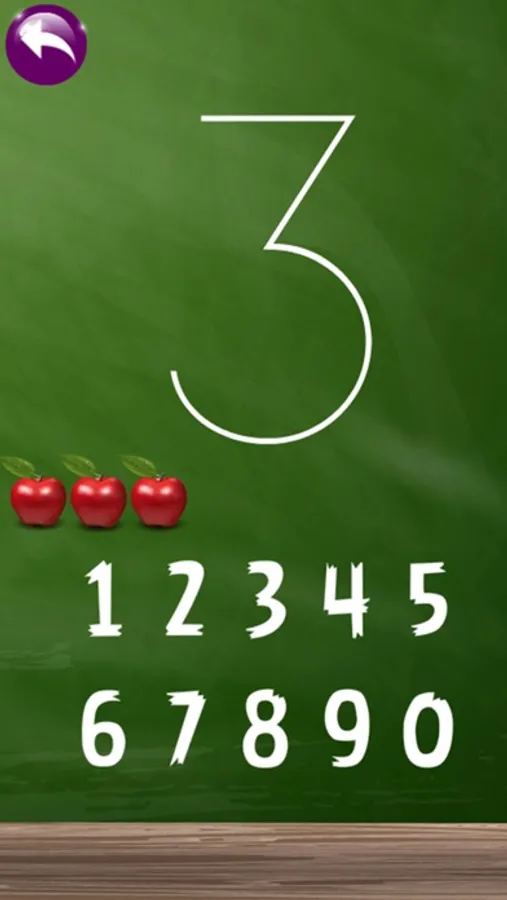 وكذالك ليتعلم الطفل العد عند ظهور كل رقم يسقط عدد من التفحات بحسب الرقم اللمطلوب فاذا ضغط الصغير رقم 7 يسقط له سبعة تفاحات وهكذا مع كل رقم يتم اختياره .