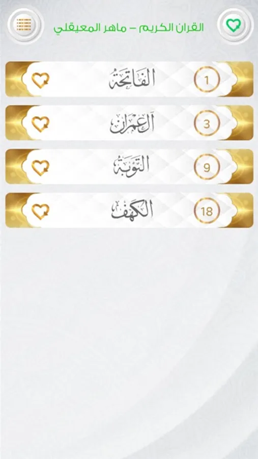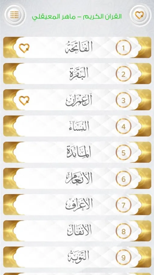 امكانية اضافة اي سورة الى قائمة المفضلة للوصول لها بشكل سريع في اي وقت باستخدام زر القائمة.
