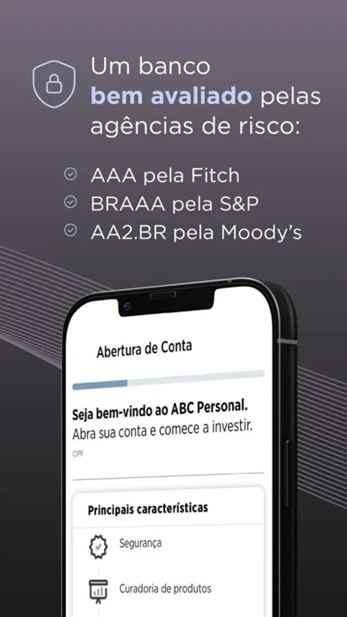 Investir no ABC Personal te dará segurança e tranquilidade, assim como todos os benefícios de uma conta digital gratuita.