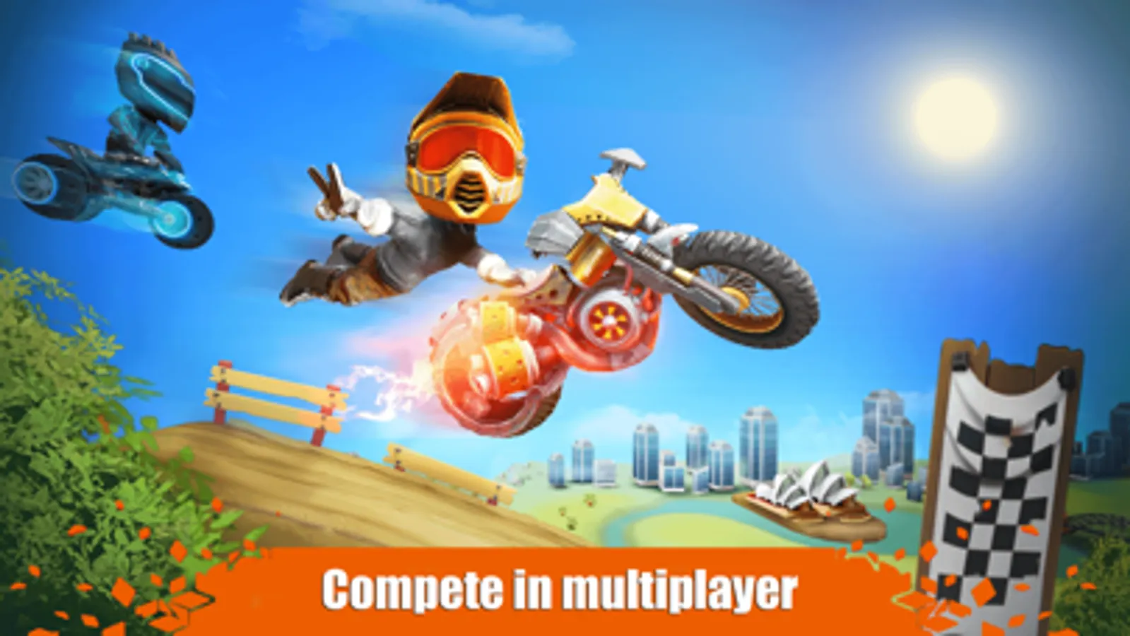 Unlock awesome bikes, race in fun and challenging single or multiplayer levels! Avoid dangerous obstacles like breaking glass, spikes, bombs and wind zones to collect your treasures.
