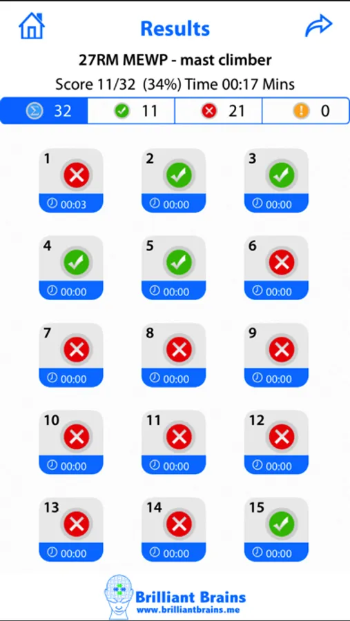 A summary of the practice test is presented at the end of each test. It shows you the time you took, the score, which questions you answered correctly and where you were wrong. And yes, you can E-MAIL the results.
