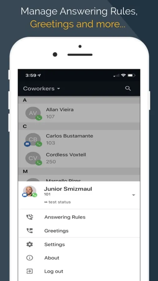 Voxtell Mobile App allows users to manage contacts, voicemails, call history, and configurations in a single location. This includes the management of answering rules, greetings, SMS, Chat, and presence which all contribute to more efficient communication.