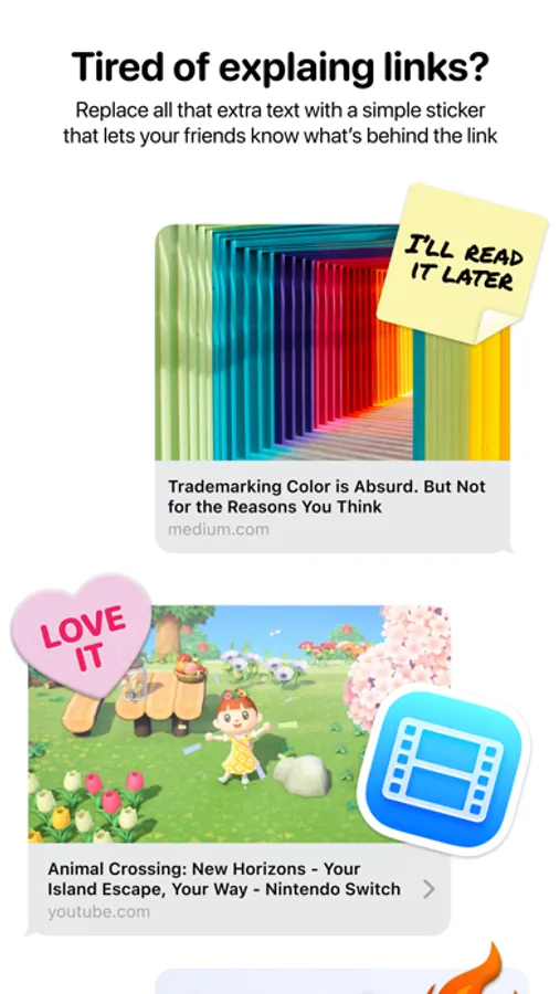 Add more context to your conversations without interrupting the flow. Let your friends know if you’ve shared a gallery or video, or if there are comments to read, audio to listen to, and much more.