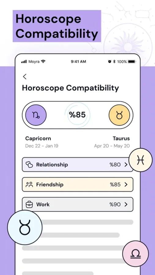 You may think that your zodiac sign or ascendant doesn't represent you. But after experiencing Moyra, your ideas may change, because Moyra prepares customized content for you by taking into account the effects of your sign and ascendant from other planets instead of just using general information.