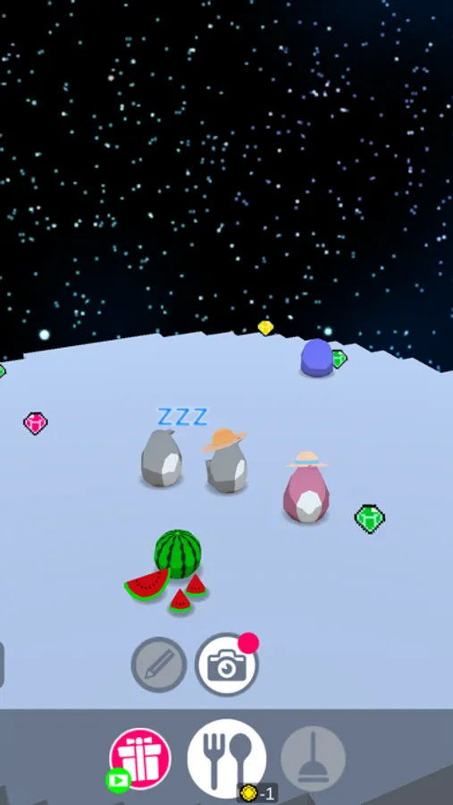 2. Pick up gems that penguin spit out.
