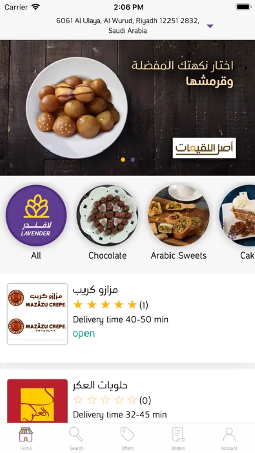Lavender application offers distinguished delivery services that include the sweets and snacks, also we serve from flower shops and gifts, perfumes. Lavender application also offers special services to customers wishing to send gifts to their loved ones, whether it is chocolate, bouquets of flowers, and perfumes.
