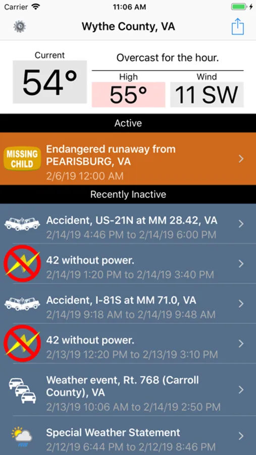 • Traffic accidents (VDOT, WVDOT, OHDOT, TNDOT & NCDOT)