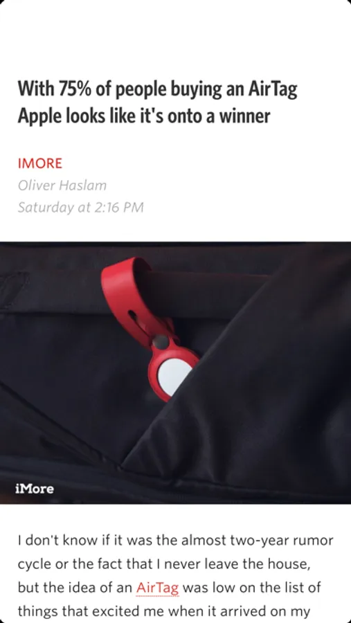 • Article actions for sending articles directly to supported bookmarking and read later services, and for sharing via email or iMessage.