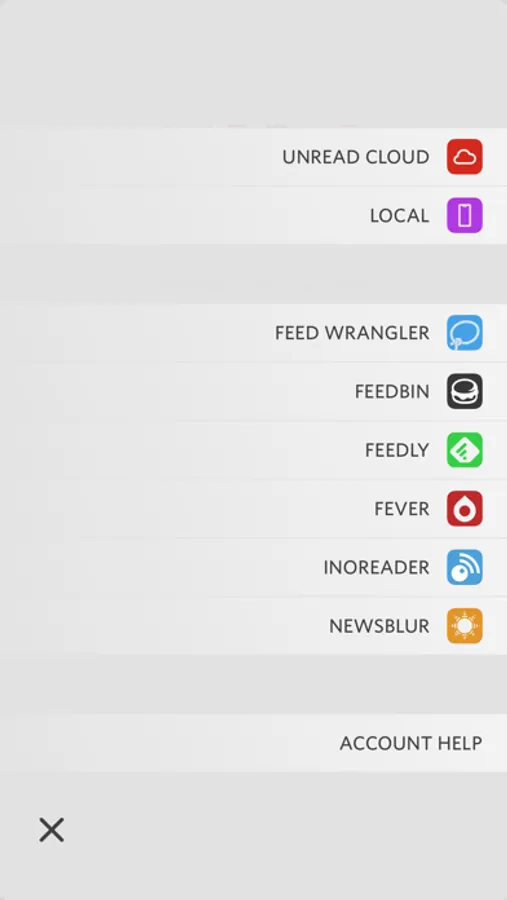 OTHER SYNCING OPTIONS: In addition to Unread Cloud, Unread can sync with your Feedbin, Feedly, Fever, Inoreader, or NewsBlur account.