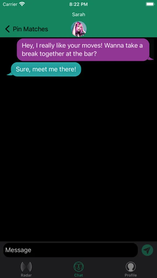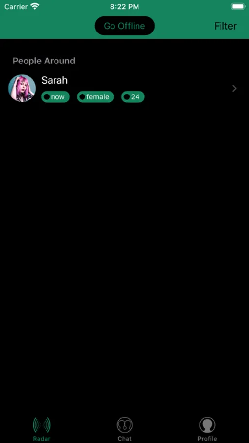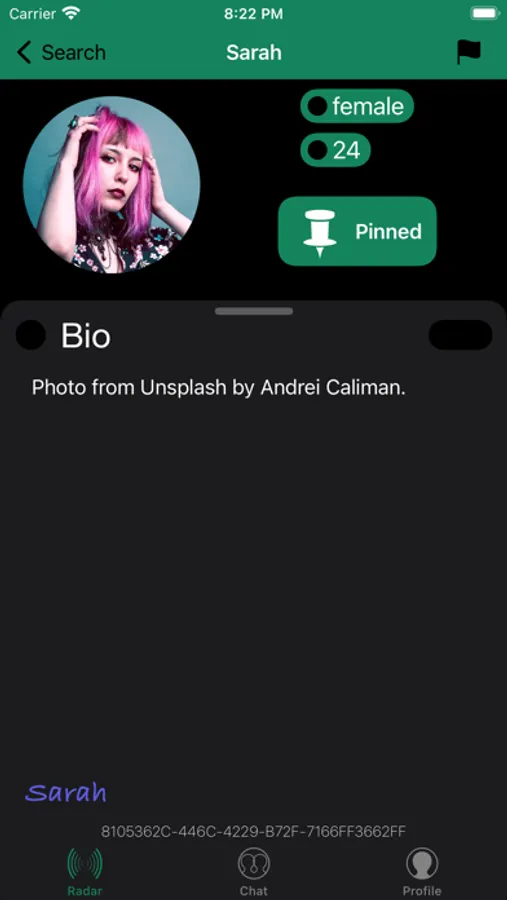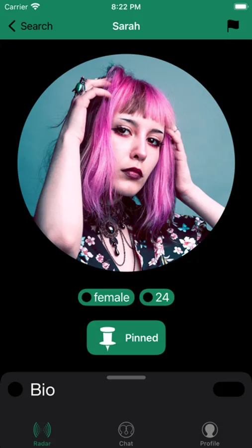 Spot people around you through Bluetooth. Pin the people you find if you want to get in touch with them. When you are also pinned, you can chat with each other.