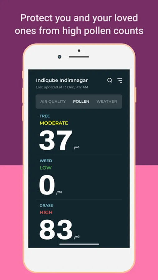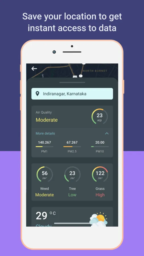 You can now plan your daily work, outdoor exercises, travel plans, and much more with accurate, real-time, and hyperlocal weather, air quality, and micro pollen data. You can also easily check, track, monitor, and save location to get an instant environmental summary. Continuously monitor the pollen count in the atmosphere and keep allergic rhinitis, hay fever, and other pollen allergies at bay.