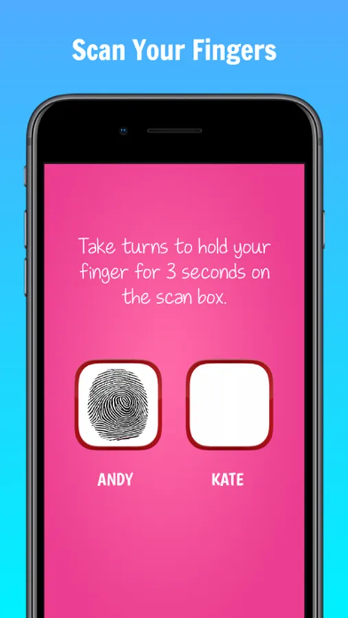 Take in turns to scan your fingerprints and the love meter will show you how compatible you are. It takes 3 seconds to scan each fingerprint and you will automatically receive your love compatibility result and see if you're the perfect match!