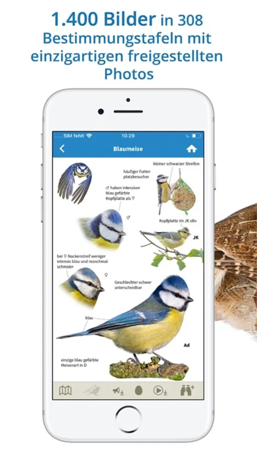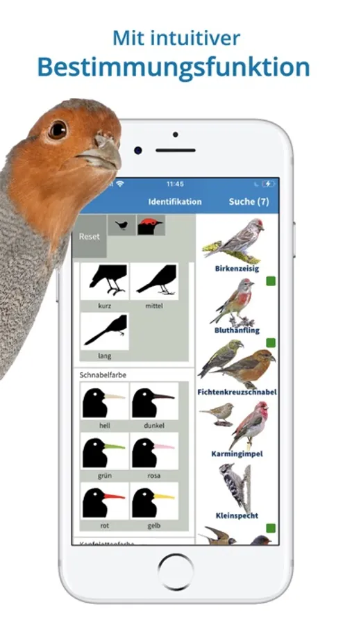 • Suchfunktion für das schnelle Finden einer Vogelart