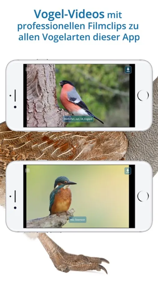 • Vogel-Video Paket 3 mit professionellen Filmclips zu den verbleibenden 104 Vogelarten dieser App