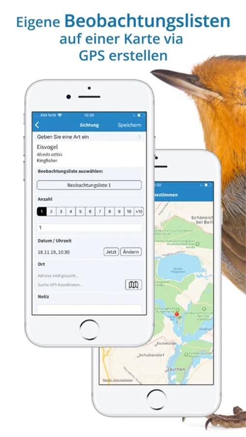 Sie können die App nutzen, um Beobachtungslisten anzulegen, und diese sowohl für den Eigengebrauch als auch für die Teilnahme an den NABU-Aktionen „Stunde der Wintervögel“ und „Stunde der Gartenvögel“ zu exportieren. Mit Ihrer Teilnahme tragen Sie dazu bei, Trends zu den Beständen der einzelnen Arten zu erfassen um nötige Schutzmaßnahmen mit auf den Weg zu bringen.