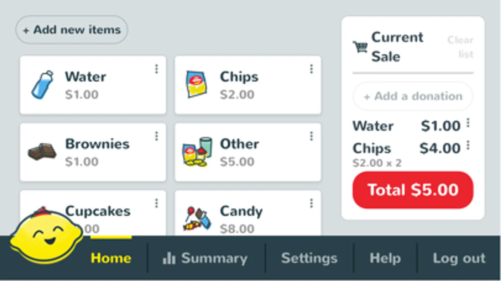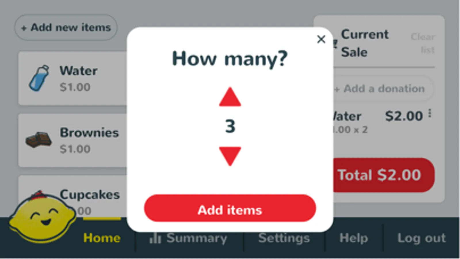 Enhance the learning experience of Lemonade Day with this fun, interactive Lemonade Day Check Out app. Set up your items to sell, give those items prices, ring up customers, and track your sales for the day. Kids will have a blast running their Lemonade Day business, all the while learning the real technology and processes around owning a business. Let's get selling!