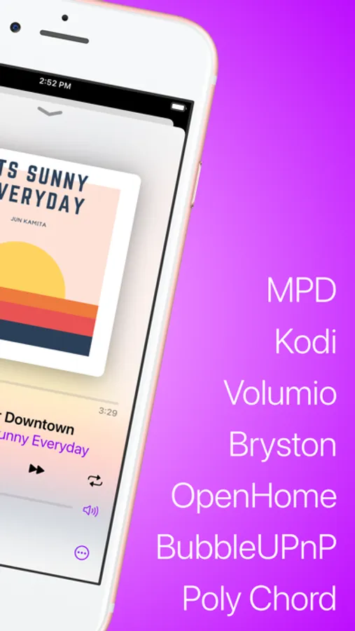 • Automatic detection and configuration of players on your network (Kodi, Bryston, Volumio, Rune, moOde, standard mpd)
